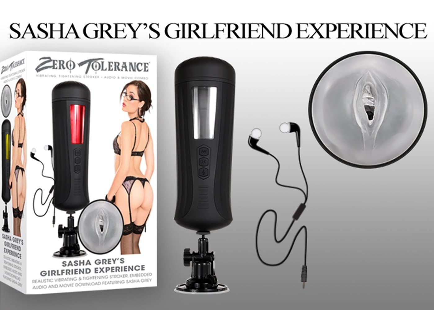 Stroker plays erotic Sasha Grey audio, ear buds included