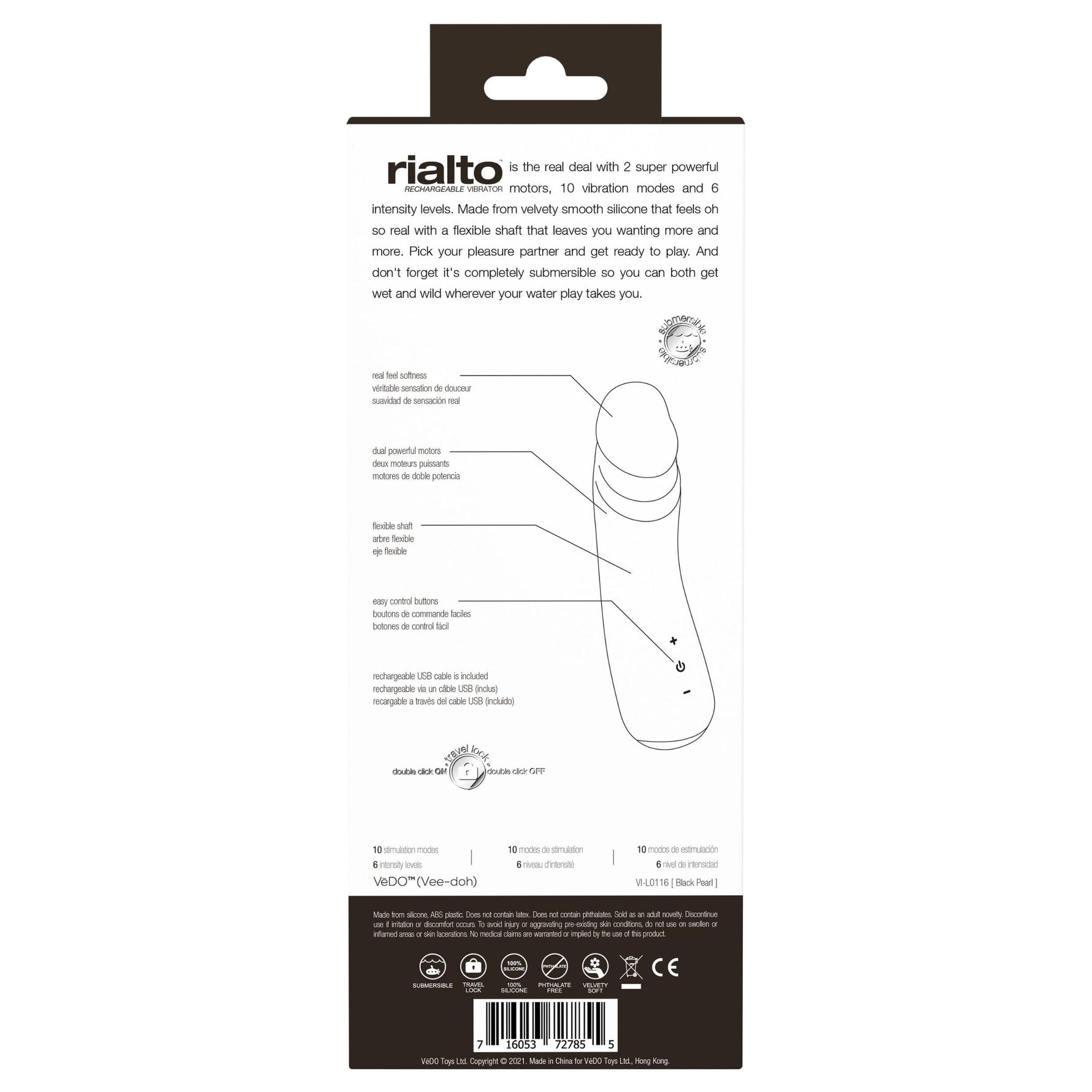 Rialto Rechargeable Vibrator - Black