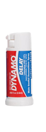 Dynamo Delay desensitizing spray helps couples enjoy longer-lasting sex with a clinically tested fast-acting formula that safely, effectively and temporarily prolongs the time until ejaculation with 13% Lidocaine USP at a 35% stronger concentration. Improve stamina, increase endurance, and prolong pleasure with Dynamo Delay.