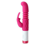 G Rabbit Plush is a true multi-tasker, with plenty of powerful functions in one sleek pleasure object. Made of pure silicone, it's phthalate and latex free and nonporous. A powerful microbullet sends 7 vibrating functions however you desire. The thrusting shaft is ribbed for internal stimulation and the curved tip gyrates with 3 speeds for intense g-spot pleasure. Just add a touch of silicone-safe lubricant and the smooth satin finish becomes slippery. Clean before and after each use with soap and warm water or toy cleaner.
